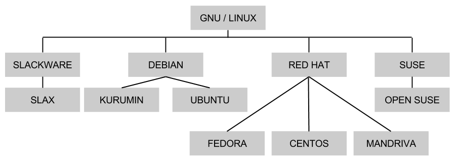Abaixo segue a abaixo algumas distro e sub-distros do linux: